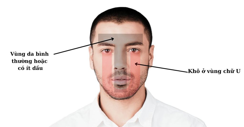 Loại da cũng sẽ đổ dầu ít ở vùng chữ “T” hơn da hỗn hợp dầu. Ngoài ra vùng da khô ở hai bên má sẽ chiếm diện tích nhiều hơn so với vùng da đổ dầu. Phần xương hàm và cánh mũi có dấu hiệu khô ráp, thậm trí là bong tróc cả vào mùa đông và mùa hè.