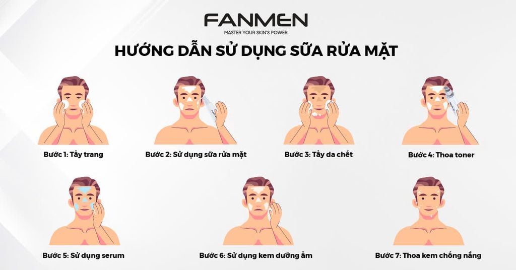 Sử dụng sữa rửa mặt sẽ có tác dụng loại bỏ dầu thừa và bụi bẩn sâu trong lỗ chân lông. Tuy nhiên đối với làn da khô nhạy cảm nam giới bạn bạn chỉ nên lựa chọn các loại sữa rửa mặt dịu nhẹ, không chứa các thành phần xà phòng, hương liệu, cồn,…Hiệp hội Da liễu Hoa Kỳ (AAD) cũng khuyến cáo rằng những người có da khô nhạy cảm nên sử dụng sữa rửa mặt dịu nhẹ, không chứa xà phòng và hương liệu.
