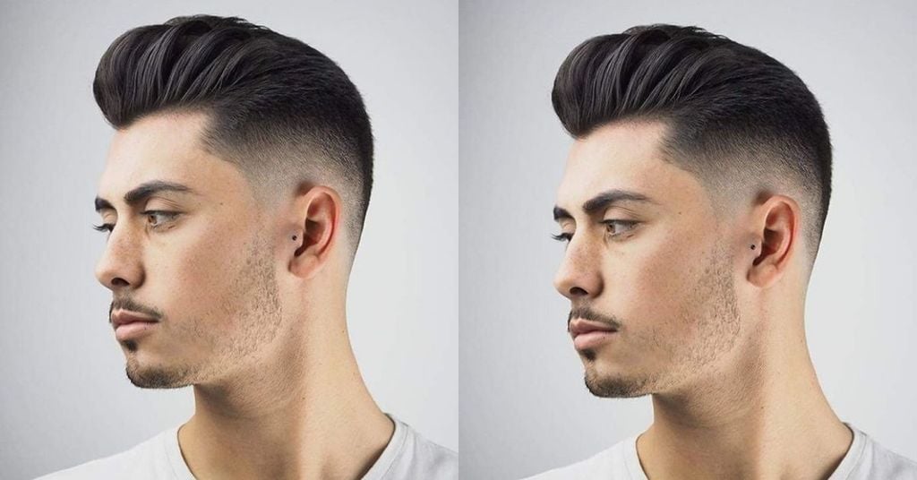Kiểu tóc Pompadour được tạo kiểu bằng cách vuốt cao phần tóc mái và bồng bềnh. Còn phần tóc 2 bên tai được cạo sát da đầu, tạo lên sự cuốn hút ấn tượng cho phái mạnh.