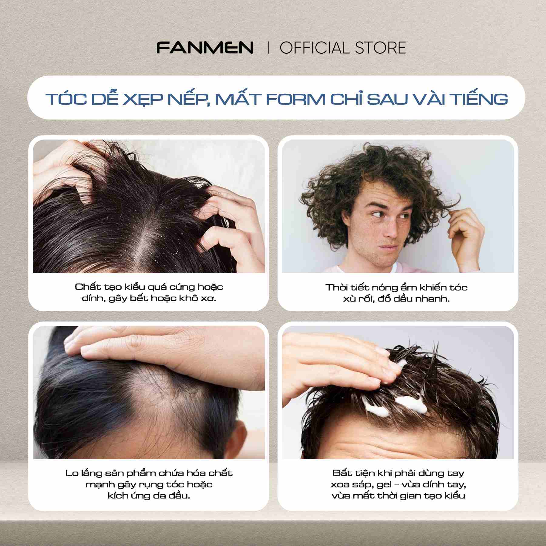 Thị trường hiện tại có nhiều sản phẩm tạo kiểu tóc nhưng vẫn tồn tại những vấn đề lớn: khô tóc, gãy rụng, bết dính, mùi quá gắt hoặc mất nếp nhanh. Trong khi đó nam giới ngày nay không chỉ cần tạo kiểu mà còn yêu cầu sản phẩm không gây hại cho tóc, mùi hương tinh tế và dễ sử dụng không cần dùng tay như sáp hay gel truyền thống.